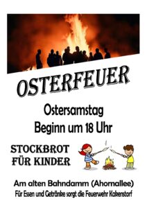 Unsere Feuerwehr wird, wie jedes Jahr, die „weltbesten“ Pommes, Wurst und Getränke verkaufen. Stockbrot für die Kinder wird es auch geben.