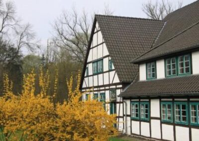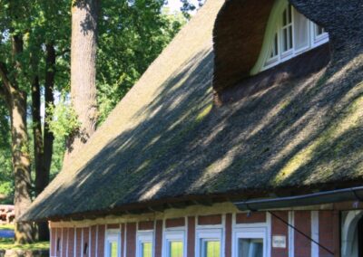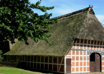 Wer sich hinter der Mühle rechts hält, betritt ebenfalls historischen Boden. Vom Brink – dort lebten und arbeiteten früher die Handwerker – stehen noch einige Gebäude.
